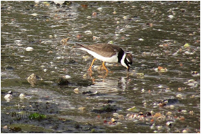 Había unha néboa bastante espesa, e aínda que dende a distancia onde estaba, (Eu diría que mais de 100 metros) non podía concretar o bicho, mais algo lle vín que me deixou cheo de dúbidas, así que, como fago moitas veces, "primeiro disparo, e logo pregunto" pois neste mundo das aves, si fas ó contrario, o mais seguro é que perdas a oportunidade. Así que tirei varias fotos pra ver si había sorte, e na edición e ampliación da foto saír de dúbidas.